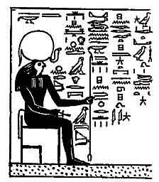 De God HERU-HER-KHENT-F, gezeten op een troon, zoals zijn naam al doet vermoeden.