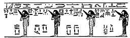 Deze vier Godinnen bewaken vier rechthoekige “kisten” (Afb. 4 en 5) welke aan elk eind een mensenhoofd hebben, binnenin elke “kist” bevindt zich een zandheuvel, onder wie één van de vier vormen van Osiris is begraven.