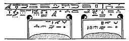 1. De boot van Ra, die staat onder een baldakijn gevormd door het lichaam van de slang MEHEN, de God heeft een ramskop en draagt een schijf op zijn hoofd en zijn naam AFU is twee keer vlakbij hem geschreven. (Zie afb. 1)