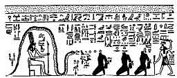 “Het werk van dit figuur, in dit plaatje is in de Tuat en het is aan hem om de sterren op hun weg te sturen en om hun uren te maken op hun weg in de Tuat”.