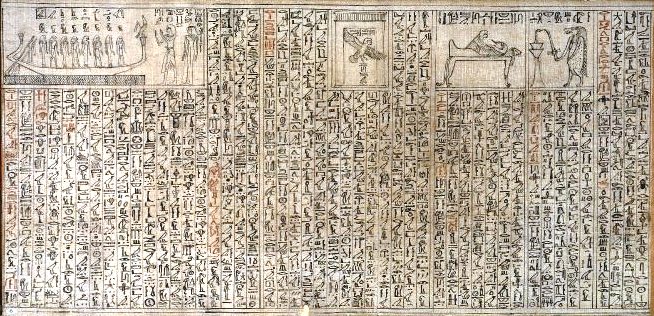 | 3 | Eb | 18de/19de dynastie hiërogliefen papyrus van Ꜣny uit Thebe, BM 10470 | Bv. E. A. Wallis Budge, De Papyrus van Ani (1913) |