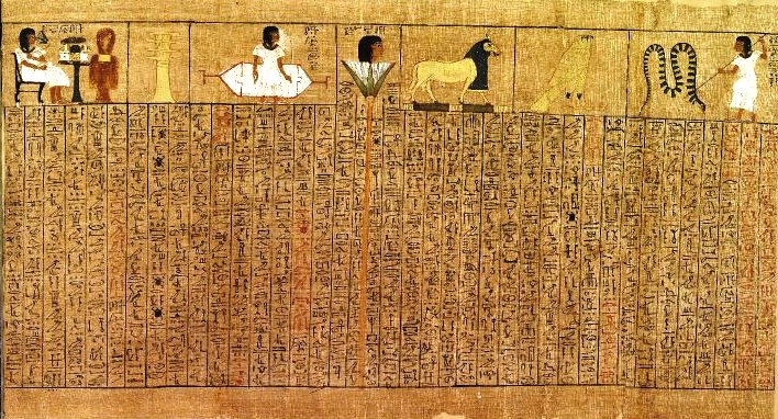 Bezweringen 156, 157 en 159, bovenaan links, Tint-Djehutyt staat in adoratie voor een plaat, waarop een papyrus-column is gegraveerd. (Bezwering 159)