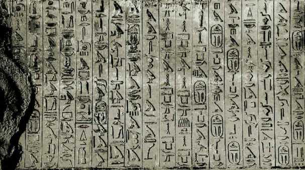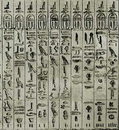 Afbeelding van de piramideteksten in de sarcofaagkamer van Unas, noordzijde.