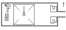 Op zijn laagste punt wordt de gang horizontaal en komt uit in de grafkamer, welke gevestigd was op de verticale as van de piramide, aan de westmuur stond een sarcofaag.