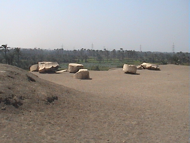Zicht op de zuilen van het paleis te Memphis.