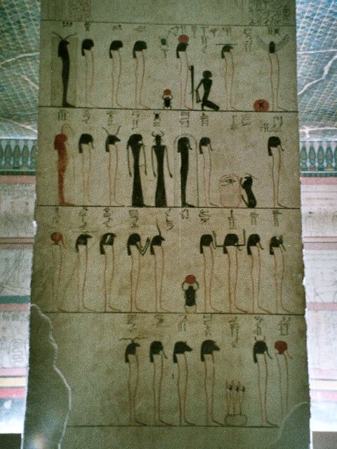Afbeelding uit KV34 (Thoetmosis III), de zonnelitanie van Ra.