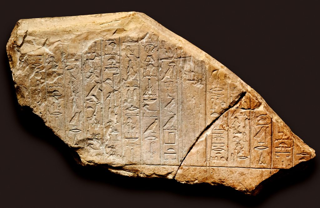 Fragmentair decreet van koning Neferkauhor, waarbij de broer van Idy (de laatste is de vizier en opzichter van Opper-Egypte) aangesteld wordt op een betrekking in de Tempel van Min in Koptos. Regering van Neferkauhor, 7e-8e dynastie, eerste tussenperiode. acc. nr. 14.7.12.