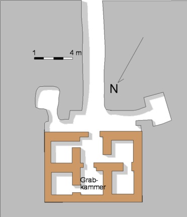 Plattegrond van de binnenkamers in graf Q 3 van Qustul.