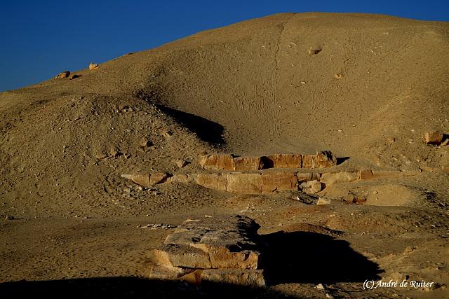 G.Maspero meldt dat de stenen blokken afkomstig zijn van oudere koninklijke tombes (Cheops, Chephren, Oenas en Pepi II) en gebruikt zijn voor deze constructie.