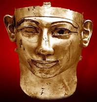 Gouden grafmasker van Sheshonq II in het Cairo Museum.