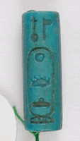 Scarabee-vormig zegel-amulet gegraveerd met een cartouche met tekens die de prenomen van Sobekhotep VI zouden kunnen zijn.