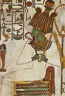De mummievormige god met de Atef-kroon uit plantenstengels en struisvogelveren gold oorspronkelijk waarschijnlijk als oogst- en vruchtbaarheidsgod.