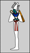 Als koning in bet dodenrijk had hij de koningsinsignes kromstaf en gesel.