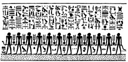 De hiëroglifische tekst die betrekking heeft op deze groepen luidt als volgt: