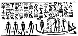 De boot van Ra, gesleept door de Goden van de vijfde divisie van de Duat.