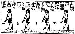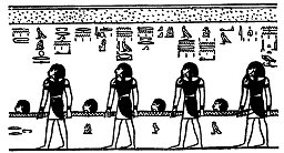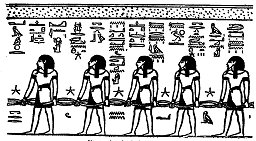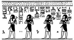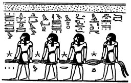 2. Acht bebaarde Goden (Afb. 5), de NETERU-HETI, die rechtop staan met hun handen hangend langs hun zijde.