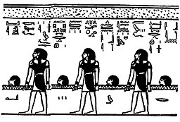 “Dit zijn zij die de tegenstanders zijn van zijn tweevoudige kwaad en die de vijanden van Ra overwinnen en het is hun plicht om de Seba-demon te grijpen wanneer hij de hoofden uit hem tevoorschijn laat komen.