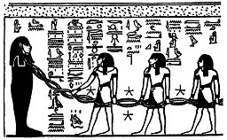 Elke God staat in een lus, gevormd door de twee touwen en heeft een ster voor zich.