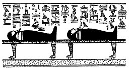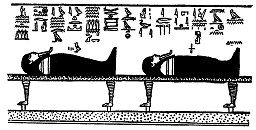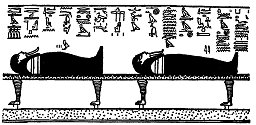 (Links) Een God in gemummificeerde vorm.