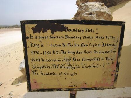 Echnaton had om de grenzen van de stad Tell-el-Amarna allemaal stèles laten zetten zowel op de oost- als op de westkant van de Nijl. Verderop in de woestijn zijn er nog 2 maar die zijn alleen met een 4×4 jeep te bereiken.