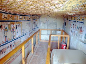De grafkamer is versierd met taferelen uit het Boek der Doden en het Boek van de Aarde.